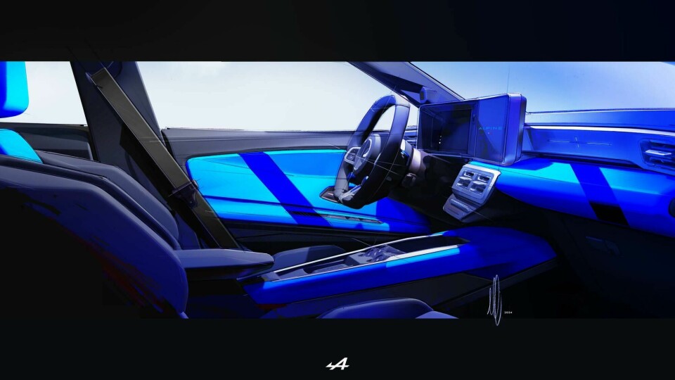 Inside, Villain is particularly pleased with a couple of elements in particular. The steering wheel, he says, was a crucial element to the overall feel and is likely to be carried through to other models down the line. “We wanted something we could carry through in the future, so this is really a signature Alpine steering wheel,” he explains. “We worked a lot on the packaging and the position of the spokes to have a lot of angle. This is super important because it is a component you have under your eyes at all times.”