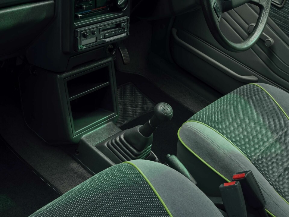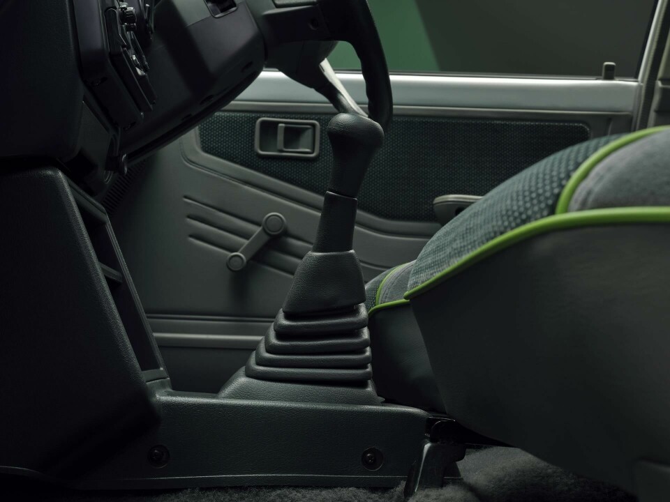 The fuel gauge, for example, is now a battery level indicator. The pop-open lid now houses a charging port as opposed to the fuel cap. Even the manual gearstick remains in place, which we are told is in fact functional. “[The motor] drives the front wheels via its original five-speed transmission, retained and re-worked by Electrogenic.”