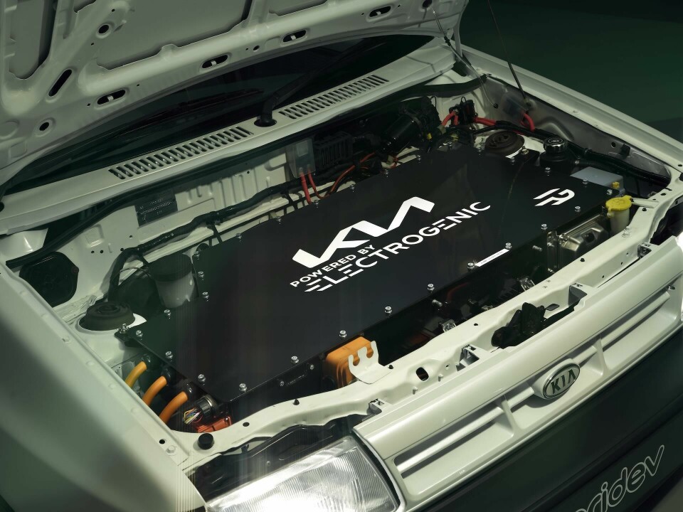 The Pride EV is a restomod in the truest sense of the word, taking a 1996 Pride hatchback supplied by Kia UK’s heritage fleet and modified tastefully by Oxford-based Electrogenic. It is quite a different project to the company’s usual undertakings, which typically include Land Rovers, 911s and E-Types.