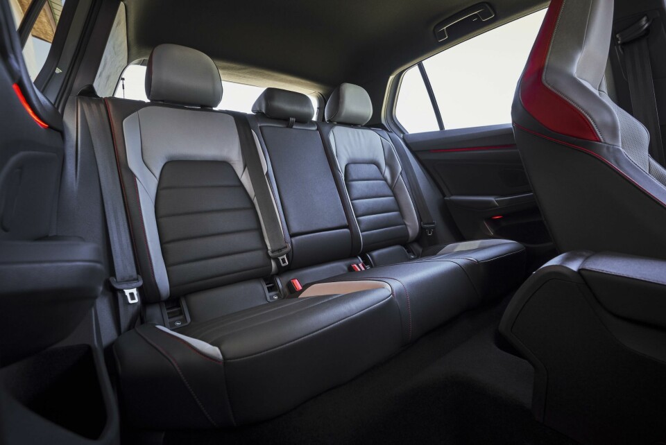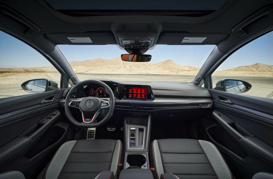 Other details include the new sport seats with integrated head restraints, grey and black fabric cladding for several surfaces that features red seams and red stitching, and the manual version has a new gear knob that was inspired by the old golf-ball designs. There is also a new three-spoke steering wheel with a red GTI accent on the bottom spoke.