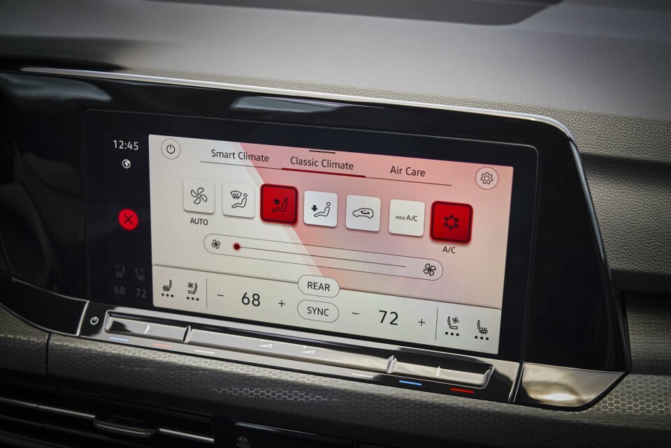 Lighting plays a key role in making the exterior appearance of the Golf GTI stand out, as it does on the inside too. The dash, door trims, storage compartments and footwells are all illuminated by ambient lighting, which has 30 configurable colours. When the doors of the car are opened, the engine start/stop button will pulse red until it is pressed.