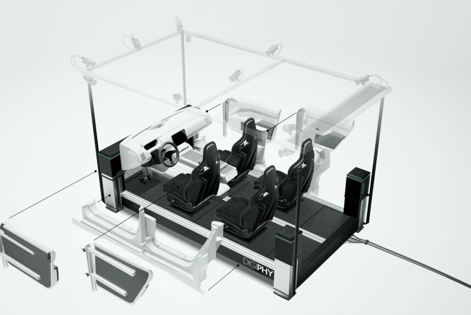 It could not be easier to use. With just a click, DigiPHY can adapt to different vehicles and allow real-time comparison between them. The platform is modular and allows designers to simulate anything from single-seat cars to three-row commercial vehicles. What makes it unique is the ability to perfectly auto-align the physical and virtual environments thanks to ten precision tracking cameras, which work in harmony with Granstudio’s patented technology. In effect, what is created digitally is immediately felt in the real world.