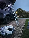 While we are careful to avoid this becoming a camping review, the tent is incredibly easy to use, with gas struts that do the heavy lifting for you and just a few metal pegs to prop up the windows. The ladder is hidden under the tent and is just as easy to fold out. Capable as this tent is, it was perhaps a poor choice to review it during a two-night stay in Scotland in freezing November temperatures. Special mention to the integrated lighting system, which can be easily set up to illuminate both inside and out of the tent. A nice touch.