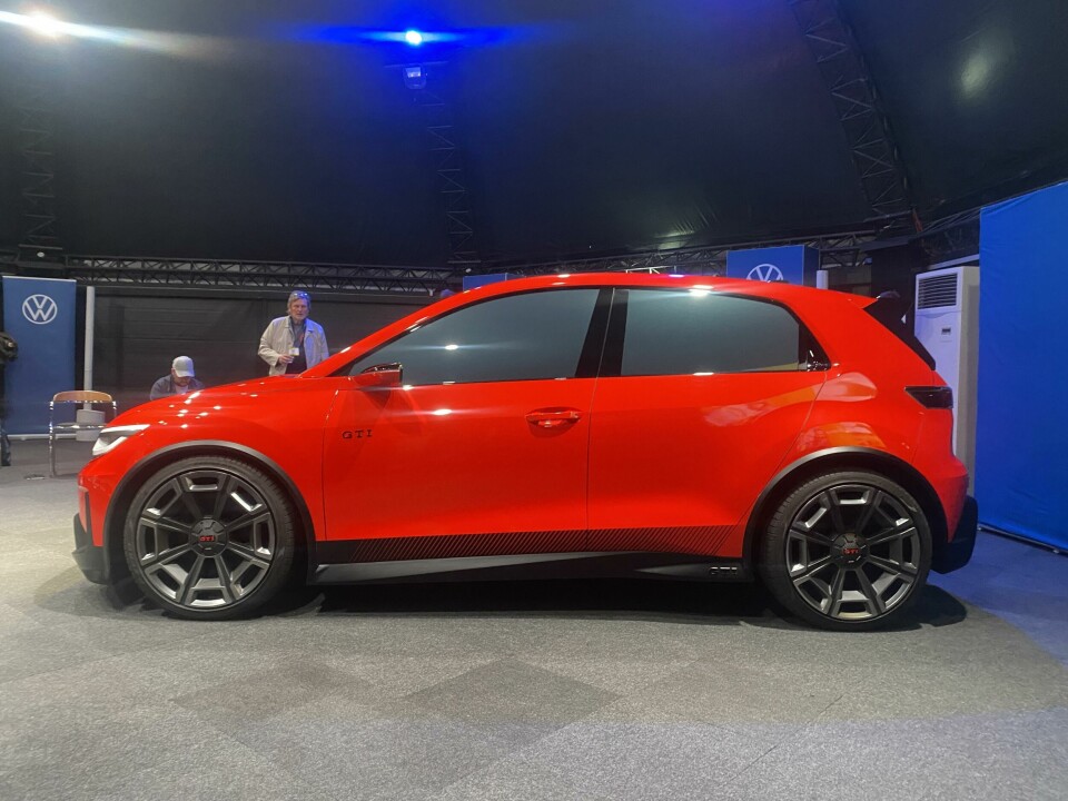 Though Mindt is quick to point out the softer, friendly countenance of the concept, the light signature of the front face is almost smiling at you, the GTI version has just enough edginess to remain true to its hot-hatch lineage. The black mask, like a strip of polished obsidian, coupled with a splitter cut an aggressive dash as does the sculpted hood and more pronounced tumblehome than previously seen on the ID. 2all.