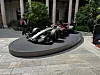 This year Audi hired Zaha Hadid Architects to design a pavilion that definitely has an out-of-this- world look about it. The ovoid-shaped structure, despite its egg-like appearance does a excellent job of shape-shifting as you walk around it. This is partially the structure itself, and partially about the way it obliquely sits in its reflecting pool. The pavilion sits in contrast to the mannered classical-style courtyard of the former Archiespicopal Seminary which itself has been transformed into the ultra-luxe Portrait Hotel.