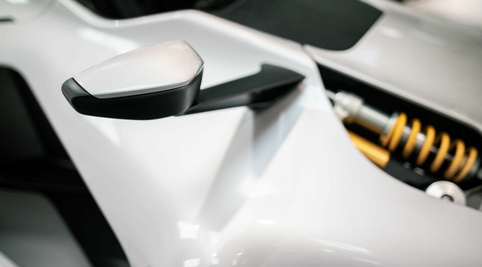 Working forwards, there are new, single-piece 3D printed mirror stalks (now with an aerofoil profile) carrying new, larger mirrors further outboard. This particular adjustment for EU homologation came with surprising visual benefits, to do with visual scale. “Ironically, having done this kind of thinking ‘ugh I have to make the mirrors bigger’ I actually feel the bigger mirrors make the car look smaller,” commented Briggs. “Also, adding a bit of body-colour makes them look less like an afterthought as well – now I feel like it’s incorporated nicely into the design, with the aerofoil and the blade and the fact that this surface ‘floats’ above [the main body], you’ve got all those different elements that we see in the rest of the car.”