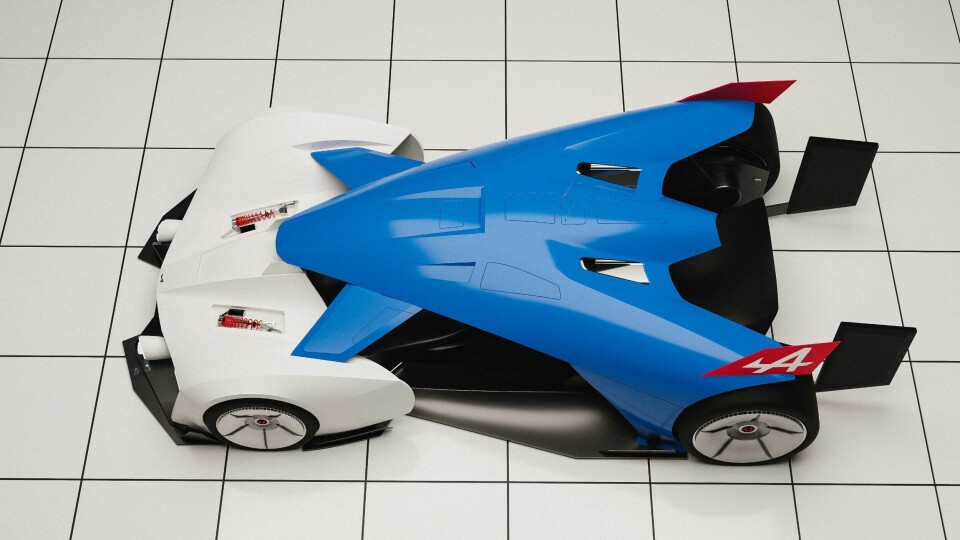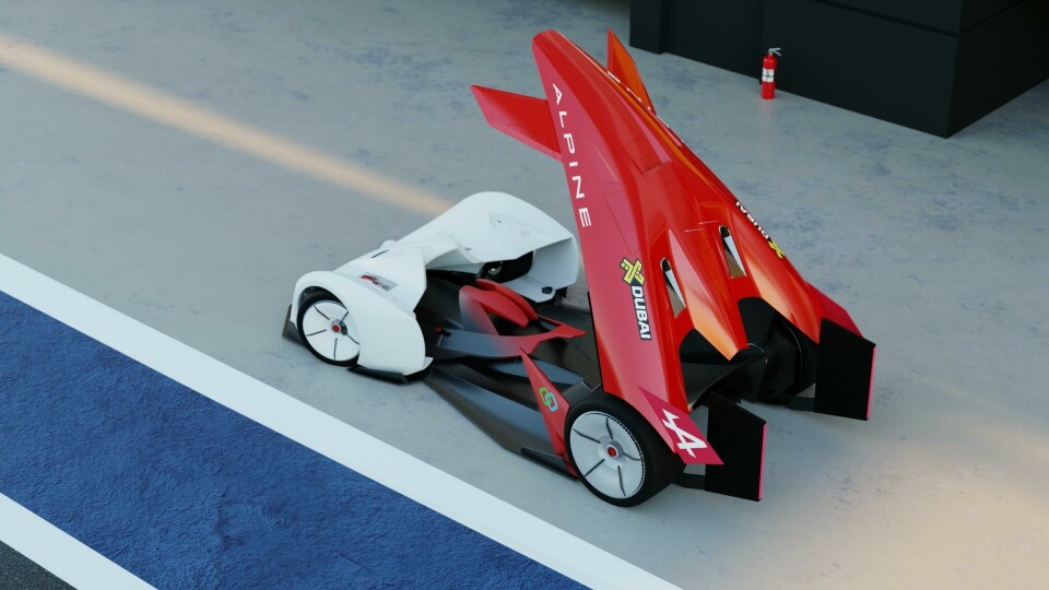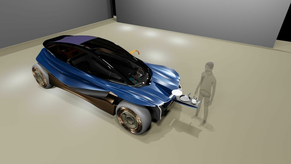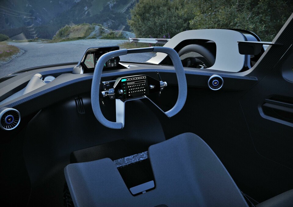 The resulting design is typical of a performance car, with flared arches and a dynamic stance. A subtle spoiler adorns the rear deck, blending seamlessly into the rear fender and wrapping round the side of the car. Thanks to a panoramic greenhouse, the suspension struts are visible through the front windscreen below the dashboard. In a way, the design emphasises the engineering.