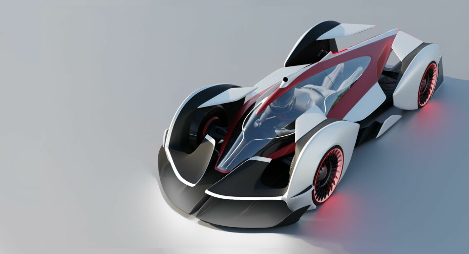 The driver lies prone on the vehicle when driving on the track, before ejecting into the air to continue racing through checkpoints in the sky. Bowden goes as far to say that the overcall concept was “influenced by danger,” while the exterior was shaped by the fact that “part of it needs to fly.” The two sections marry together well, creating the silhouette of a typical Le Mans racer.