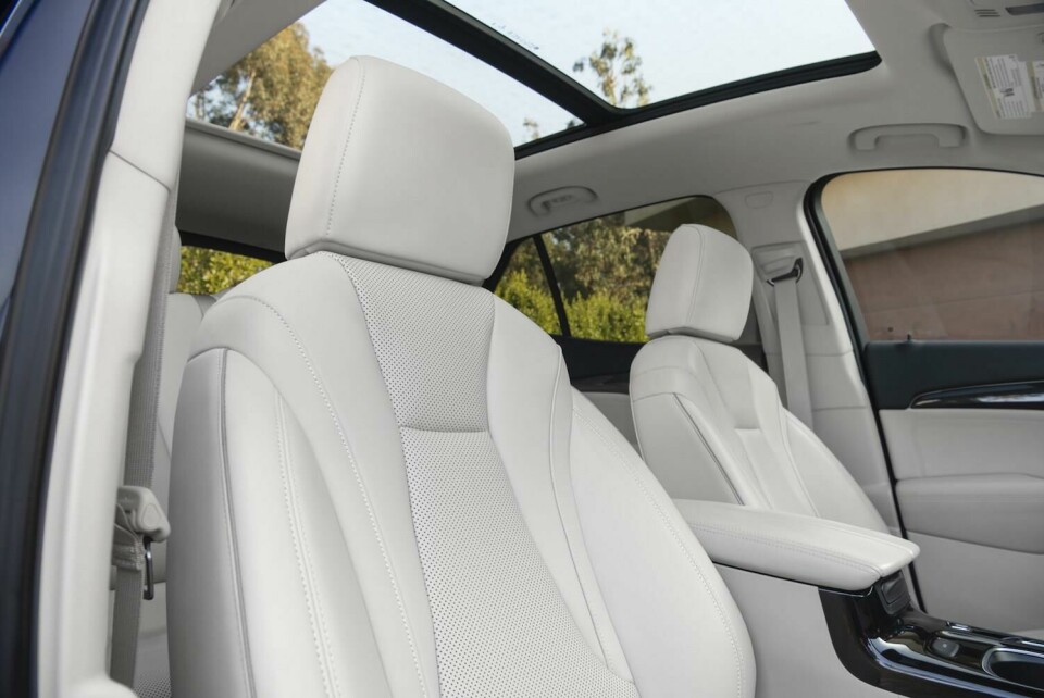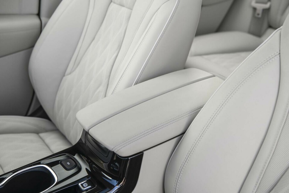 In the cockpit, the IP is canted slightly toward the driver with a 10.2-inch integrated display, surrounded by piano black to emphasise a seamless appearance. A combination of digital and analogue controls keep the IP clean, while electronic push buttons replace a traditional shifter on the centre console to create more space. Cheng points out the dual-wing centre armrest, a play on Buick’s winged design signature. Luxury features borrowed from Cadillac include massaging seats, although the shared rotary knob that controls this function along with lumbar adjustments can seem clunky and frustrating to use (all hail one-touch massage controls). In our Avenir test model, seats get diamond-perforated leather and elegant open-pore wood executed in a wave pattern, along with ambient lighting that highlights the lines on the IP and door.