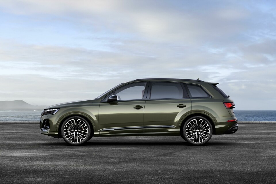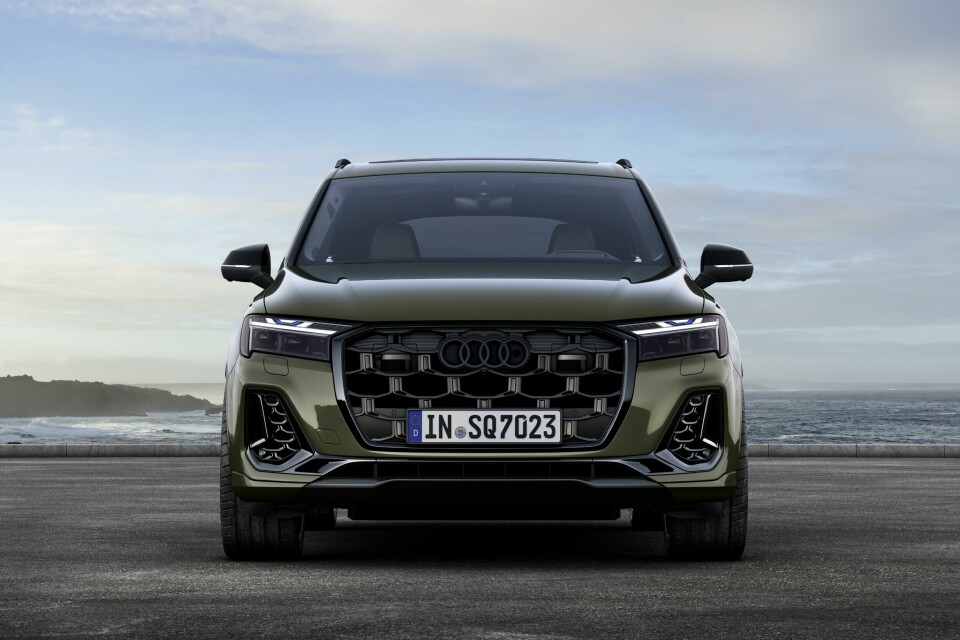 The Q7 and SQ7 have been given a refresh with a sharper overall look created by narrow DRLs, a new octagonal grille design and intricate multi-spoke wheels. Audi desribes the look as “unmistakable” and more modern than before.