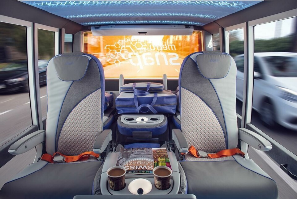 Which brings us to this year. Rinspeed is introducing the MetroSnap, the largest of the group of Snap concepts. It can seat six in a 3+3 arrangement like a mini-bus or shuttle, it can again, be a mobile conference room, or be outfitted for all manner of commercial or logistics/cargo solutions.