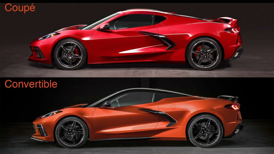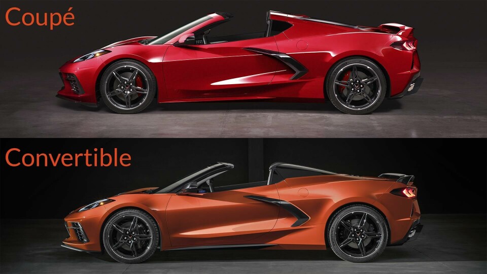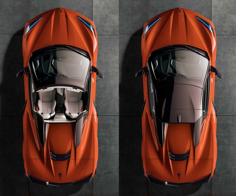 Chevrolet said in a statement that the C8 “was engineered first and foremost as a convertible,” and that they chose a folding hardtop, here made of “sheet-moulded composite”, for this edition to maintain the cabin quietness and smooth look of the coupé (which itself has a lift-out panel in the roof anyway). As such, they have managed to keep the side profile exactly the same on both versions.