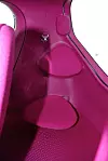 The cabin, which KIA described as “spaceship-like” is a Verner Panton-esque landscape of purple, where the interior shell of the car seems to morph into seats and back again, like a sort of interior Moebius Strip. The carpet on the floor is a deep purple with wavy pattern of pinkish dots that keep the eye moving and are just a bit unsettling. Sufferers of motion sickness beware.