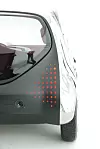 If the BMW i3 was the serious student, the Pop was the class clown, cleverly upending traditional notions of proportion and design. The body was chrome-colored and highly reflective. The interior was a vast purple field. The front and rear had backlit frit-dot patterns. The side elevation revealed a peculiar oblong side window and fender bulges that popped out (pun intended) over the wheels.