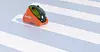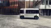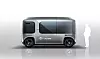 At the 'front' of the vehicle, a pair of cute circular headlamps occupy the front mask, and again there is a slight difference in surfacing: one side of the car is almost perfectly vertical like a building, while the traffic-facing side sports rounded edges. An external display on the bodyside communicates to other road users where the shuttle is headed – just as a bus or tram would. Indeed, it does seem to blur the lines between those two typologies.