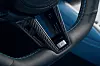 The colour wash is broken by carbon-fibre panels, brushed metal trim and darker navy trim for the floor and upper IP; the steering wheel gets the same treatment with contrast bright blue stitching. The Bovensiepen logo is embroidered on the headrest and on a metal plaque mounted on the centre console, because of course it is, but also on the plush boot floor which is soft touch right up to the rubber seal. No scratchy plastic here.