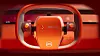 Like the Oli, colour has been employed generously on the interior, this time in bright orange — CDN of course approves. In fact, it is difficult to find a surface that is not orange. Up front, the steering wheel blends a conventional oval and a yoke-type situation, although it does also hark back to earlier Citroens; the single connecting arm reminds us of the Pallas. The driver sits centrally, meaning no need for left- and right-hand drive configurations. Again, saving cost and energy.
