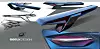 The exterior is characterised by sculpted body panels, a streamlined silhouette, and new lighting designs. At the front, a thin and continuous strip of LEDs runs vertically on either wheel arch and above the grille, creating a large ‘M’-shape that emphasises the width of the car. The inside of the wheel arches also light up, with many reddish horizontal lines outlining the shape of the arches and extending behind the doors.