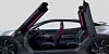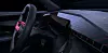 Other distinctive features include the large driving mode selector on the centre console, and a wraparound chrome handle that extends up from the console to the IP. There is also a large, flat touchscreen screen floating between the centre console and the dash.