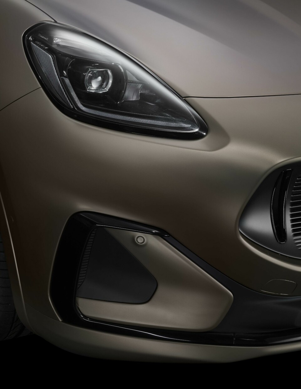 It’s no surprise that the DRG reflects that of the MC20, both representing the new face of Maserati, although we can’t help but see a similarity to the Jaguar E-Pace in the frontal appearance. There’s clear sculpture to the upper mask with compact headlamps and hood feature lines that provide the look of power beneath. The air intakes and carbon fibre air guides in the lower mask follow that pillar of being strictly functional.