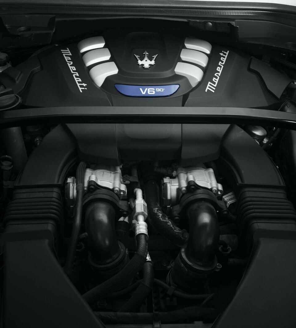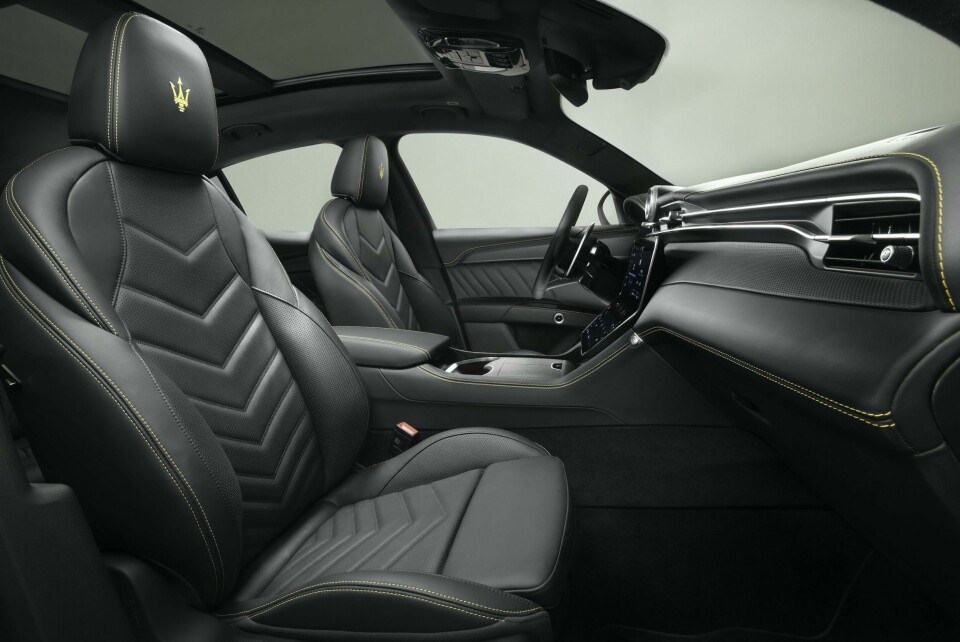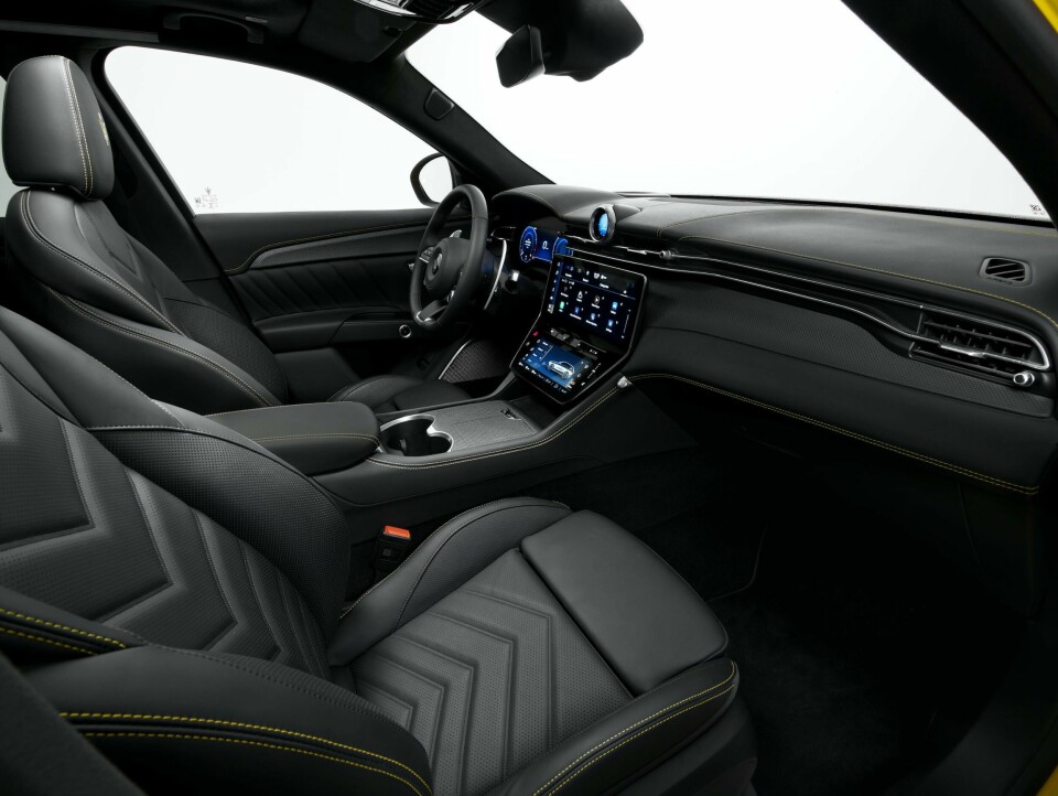 The screen on the centre stack is one large, bent surface but contains two screens, one for the Maserati Intelligent Assistant (MIA) infotainment system and the other for comfort features such as climate control, ambient lighting and seat adjustments. The gear stick has been replaced by drive selection buttons, placed between the two centre stack screens. This frees up space for storage and the driver has the option to control the 8-speed ZF gearbox using paddles on the steering wheel.