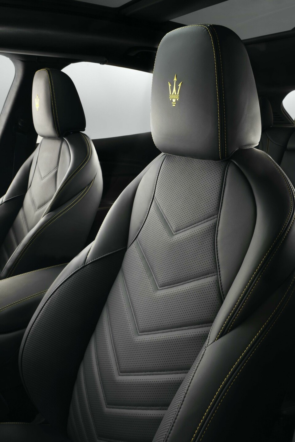 There are three main model lines, the GT, Modena and Trofeo, which head of colours and materials, Rosella Guasco, explains represent very different types of owner. GT is urban, minimal and contemporary, designed she says for those who are global citizens who pay attention to design trends but at the same time are unconventional. The Modena is for distinctive and dynamic owners, people who appreciate timeless elegance. The performance of the 3.0-litre V6 in the flagship Trofeo is reflected in the interior design with elements such as exposed 3D carbon fibre, perforated leather and a herringbone pattern on the seats.