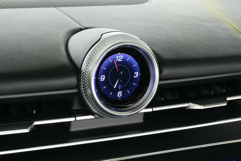 Then there’s the clock, where Maserati has chosen to ditch the luxury look and feel of an analogue clock and instead go digital, a decision that initially seems contrary to the other heritage inspired elements. The clock features a choice of screens, from a traditional Maserati timepiece face to a compass and a G-force meter. It also provides the graphical response to voice commands and this is all contained within an exquisite milled circular frame. The fourth pillar is colours, but here it’s not just about colours, but also about textures and design that appeals to different types of customer.