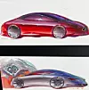 Accompanying the impressive lineup of cars was a nice display of old-school marker and airbrush renderings, many by Marek himself. It is always great to see these renderings, some of them sketchy and fanciful. Modern computer tools and future-facing programmes such as Gravity Sketch are great, but there is a passionate quality to these old renditions that is very endearing, and seems closer to the spirit of the assignment than more modern (and yes, more accurate) digital tools.
