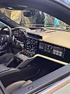 Passengers in the second row enjoy a huge amount of breathing space and legroom, with very little visible technology on show by contrast (save for the usual HVAC controls). A huge panoramic sunroof floods the interior with, in this case, artificial light from the showroom. Materials are as one would expect of a car well north of £100,000 (£157,431 for the Turbo on show; £110,979 for the standard version, both with plenty of optional extras).