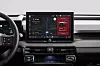 Inside and up front, a pleasantly chunky steering wheel is supported by two screens, one thinner unit for the instrument cluster while another more prominent central display perches on the dash. For all the talk of software, many will rejoice at the presence of large – very large, in fact – physical buttons on the IP. These control different driving modes both in terms of powertrain status (electric or ICE) and terrain type (trail or snow). Individual push buttons for climate control sit either side of a conventional volume knob at the centre, and there appears to be plenty of storage. The overall feel is of robustness.