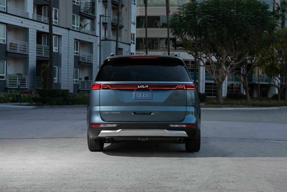 At the front, Kia’s “tiger-nose” grille is connected to the headlamps by chrome strips, the top of which runs the entire width in one continuous line. This results in a more cohesive appearance when compared to the lamps and grille on the Sedona, which were clearly separated. The lamps are far smaller and more angular – a trend that seems to be sweeping across car design.