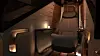 Also, the directional aspect of the bamboo cladding on the interior draws the eye beyond the seat, which itself is backed by a vertical-slat bamboo “waterfall”, again emphasising verticality and drawing the eye up and out to the view, especially when in a reclined position.