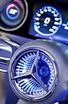 Sinkwitz also points out the seat controls on the door panel, redone in a bow shape, along with the striking stripe pattern done in metal. “One inspiration for us has been Bang and Olufsen design and home electronics,” he says, “and all of this will be even more progressive on the production car.”