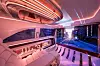 The unique seats, akin to floating lounge chairs, also add to the innovative interior feel, made from flexible tubular cushions, with shiny clasps made of polished aluminium holding the individual cushion tubes together. These seats can also be reclined to a flat position, ready to give the occupants a pamper.