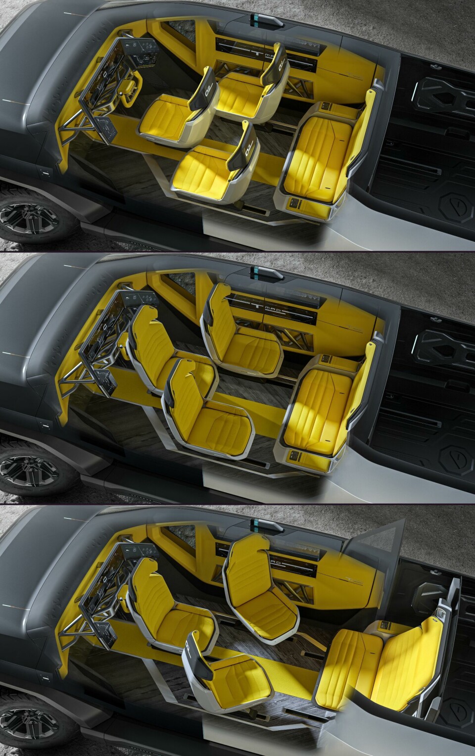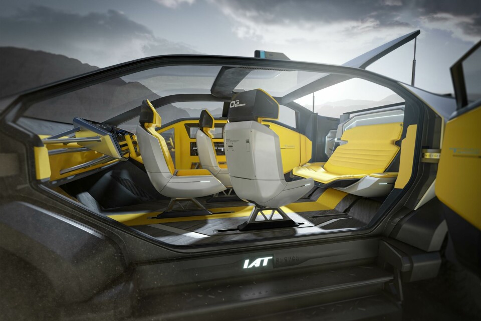To illustrate its capabilities, IAT recently revealed three new show cars, each addressing different trends and mobility challenges. The first is the Truck Mad, a super futuristic take on the pick-up truck that is designed for all-terrain versatility and cross-country driving (renders even show the car traversing what appears to be a Martian landscape). Soon Su, chief designer at IAT, describes it as a “full-size, fully-electric glamping pick-up” that is inspired by a starship. The front end sports a piano black exterior that contrasts with the matte white rear – a mix of both colours and finishes – while the interior’s bright yellow upholstery and modular seating completes the theme of ‘science fiction’ design.