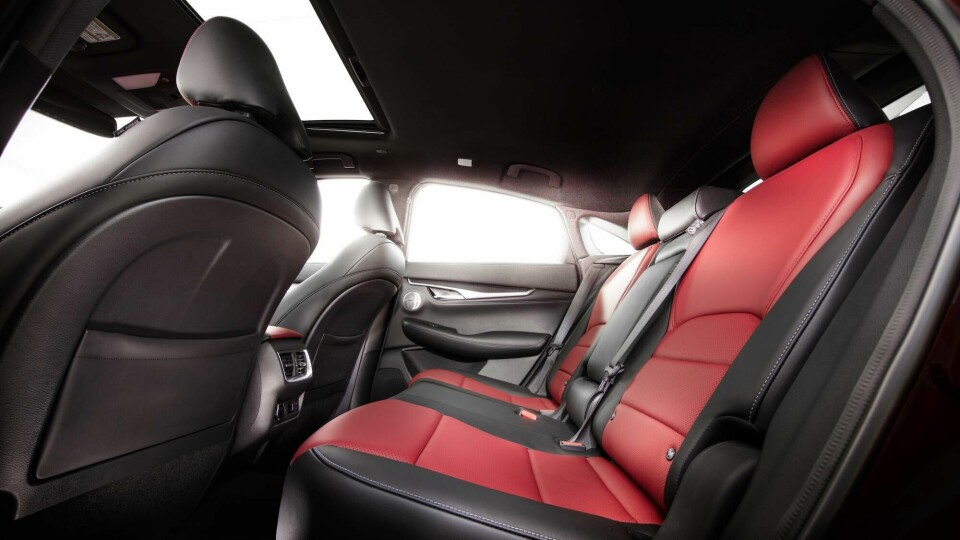 The rear lights have what Infiniti describes as a “piano key” design, with 45 LEDs creating two curves, the outer larger than the inner. The design was first seen on the QX60 Monograph in September 2020 – a large SUV concept that Infiniti said would inform future models to come.