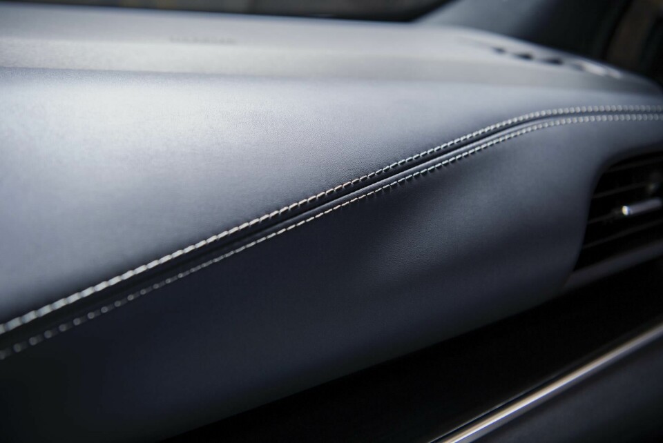 The interior has been modernised with higher-quality materials and cleaner surfaces. Leather (or a material that looks like it, at least) adorns the central section of the dash and features some nice stitch lines. Under this sits a ledge finished in what appears to be a composite material that mimicks wood, while a glossy metallic finish is applied to the centre console and small sections of the doors. The perforated and quilted seats are new too, to provide a more premium feel.