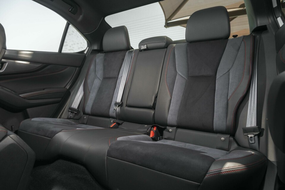As for materials, most of the cabin is clad in black plastic and leather, with red stitching accenting ridges on the dash, centre console, doors and seats. There are also carbon fibre inserts and fabric lining parts of the doors and IP. A newly designed gear stick sits inside a rectangular surround, which is either finished in glossy metallic or leather depending on the trim level.