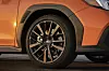 At the front, the signature Subaru hexagonal grille sits above a wide lower air intake that spans the width and includes embedded fog lamps. The C-shaped LED lights remain, sitting at the far edges so that they link the front end with the wheel arches and bonnet, which includes the trademark scoop air intake.