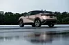 The rear is characterised by the reflector strip that runs the width of the car and connects the two lights, which sit high on the bodywork just beneath the rear window. The reflector also has a thin red line embedded inside that is illuminated whenever the Ariya is running. The rear fender flares are prevelant and, combined with the position of the lights, produce a chunky appearance for the back end.