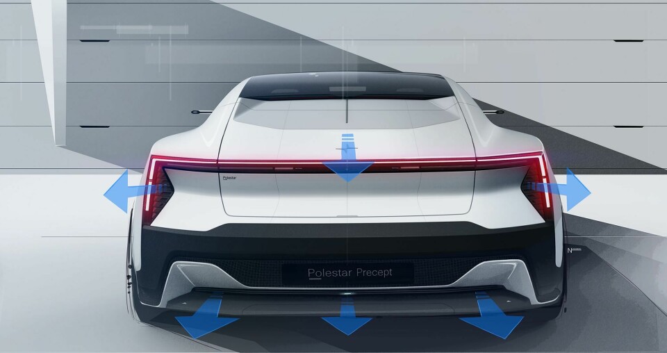 The distance between Polestar and Volvo (in terms of their expression of design) has increased, nicely illustrated by the ongoing evolution of the classic Volvo Thor’s Hammer lighting arrangement. With Precept, the hammer has been split. An expression of Polestar’s increasing independence from Volvo perhaps?