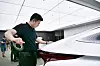 A large solar panel is placed on top of the hood and beneath the windscreen to top up power with clean energy. Another key part of the exterior design is the paint. A gray primer with fluorescent green pearl particles and a transparent varnish gives the concept a porcelain-like texture, hinting back to traditional Chinese design. Weishan Wu, a calligrapher and sculptor, has written the word ‘Kun’ in Chinese characters on both the front and back of the car.