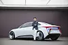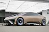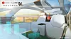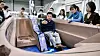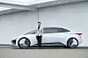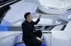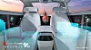 A large, razor-thin transparent screen is hidden away in the IP. It automatically rises when passengers get into the car, and displays information on road conditions as well as navigation. There is also a hologram located in the centre armrest that can display more information and can be linked to the large screen. Sensors hidden around the cabin capture gestures from passengers to allow them to interact with the screens and the vehicle.