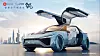Thinking further ahead, the car is depicted as having Level 4 autonomous driving capability. To ensure safety for other users, blue lights illuminate around the whole car, signaling that autonomous driving mode is engaged. And as for the flying aspect, this is enabled by the gull-wing doors which extend outwards to become wings.