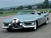 Once the lights are turned on, the grille retracts, and the two headlights shine forth, give the car a vaguely cyclopean look. The motif is repeated at the rear, where a massive circular taillight sits in the center, with little taillights mounted on the fins.