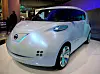 The headlights are chrome-plated tubes with LED lights, the ‘nose’ is a Nissan shield that flips open to allow for electric charging.