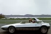There was no roof, or soft-top canopy, making the Runabout a true Barchetta. Fog lights were nestled in under the long snout, but the headlights were mounted on the rear spoiler, projecting out over the sides of the car.