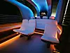 The interior, however, is a bit too tame for a Mead design, which would have tilted toward the sybaritic rather than the more train-like seating arrangement (very well done, incidentally) of the Robovan. But bespoke versions would presumably be available and no doubt Elon will have his own private Robovan with a fabulous luxe interior.