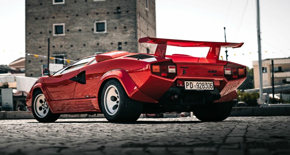 The squat proportions of the original Countach always spring to mind, too. The angular forms of the Gandini wedge contrasting with rounded, super-wide 345mm treads that are reminiscent of a drag racer. The softer edges and ‘plump’ look counter the hard angles of the exterior perfectly, and viewed from behind, add extra width to the silhouette. The same could be said for the DeTomaso Pantera, among many others.