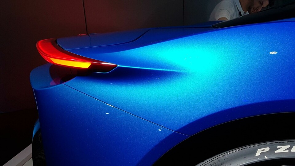 Above it is perhaps the main feature line of the exterior. It reaches from the ‘cheekbone’ of the front end, runs through the front wheel, then continues along the door before sweeping up and over the rear shoulder onto the rear deck, terminating in a ‘floating’ rear wing element on each side which is punctuated by LED tail lights at their trailing edge.